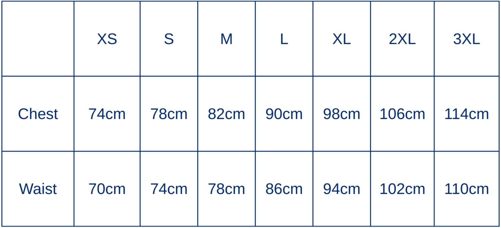Sizing chart: